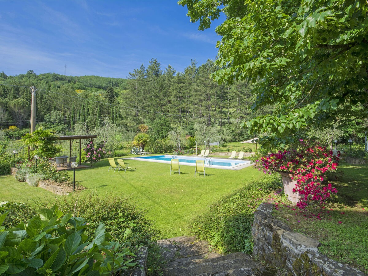 À 3 km du centre de Rufina, à 28 km du centre de Firenze, situation ensoleillée sur une colline, à 39 km du lac, dans la verdure.