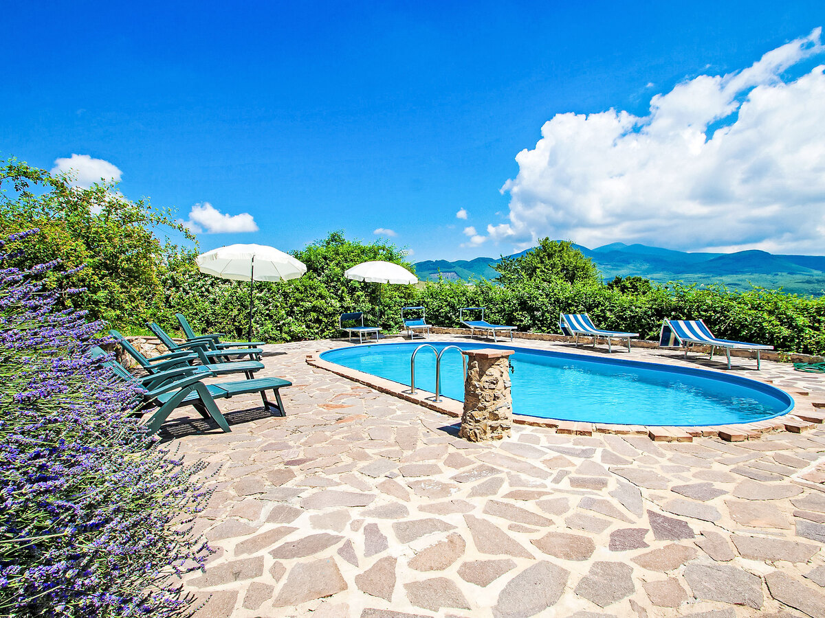 À 7 km du centre d'Arcidosso, situation isolée, ensoleillée, surélevée, dans la verdure.