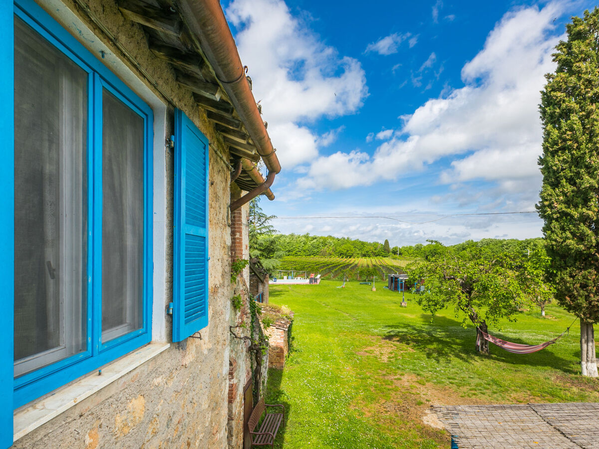 À 2.2 km du centre de Monteriggioni, à 12 km du centre de Siena, à 33 km du centre de San Gimignano, situation tranquille, ensoleillée, à 90 km de la mer, dans la verdure.