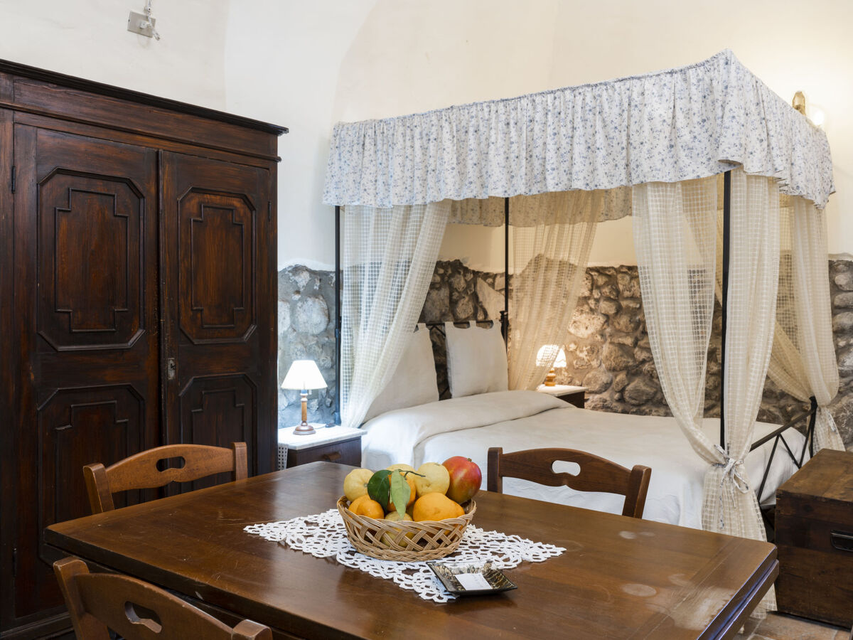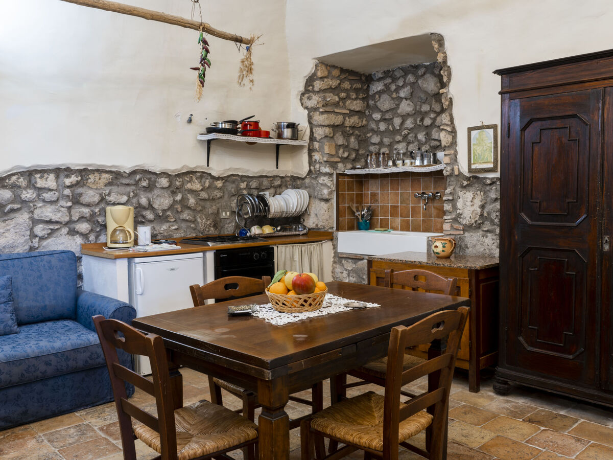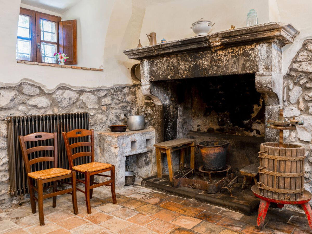 Rénové, aménagement rustique: séjour/chambre à coucher avec 1 divan-lit double et 1 grand-lit (160 cm), cheminée (uniquement à titre de décoration), table pour les repas et TV (satellite).