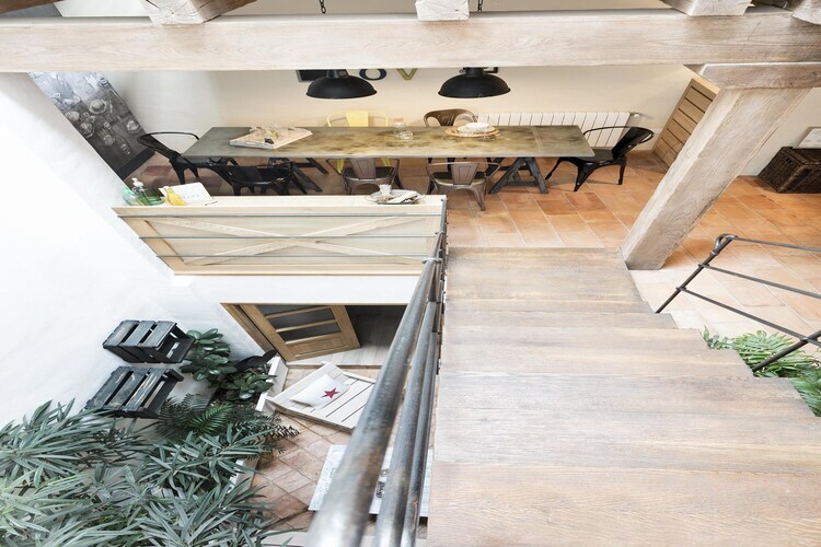 Rez-de-chaussée: (Entrée, chambre(Lit superposé(100 x 200 cm)), chambre avec salle de bains(lit double(160 x 190 cm), TV, baignoire, lavabo, bidet), chambre avec salle de bains(Lit superposé, TV, douche, lavabo), chambre avec salle de bains(lit simple(90 x 190 cm), lit double(150 x 190 cm), douche, lavabo, WC), salle, réserve(sèche-linge, lave-linge , table à repasser, fer à repasser)) Au 1er étage: (salon(TV(écran plat), cheminée, Lecteur DVD, Lecteur CD, installation stéréo), salle à manger(table(8 personnes)), cuisine(bouilloire, grille-pain, plaque de cuisson(4 foyers, vitrocéramique), hotte, cafetière/percolateur(espresso), four, micro ondes, lave-vaisselle , combinaison réfrigérateur/congélateur), garde manger, chambre(2x lit simple(90 x 190 cm)), salle de bains(douche, lavabo, WC)) Grenier: (Salle de séjour, salle de jeux(baby-foot), balcon ou terrasse) Dépendance: (salle à manger(table), cuisine ouverte(grille-pain, plaque de cuisson(4 foyers, vitrocéramique), hotte, cafetière/percolateur(espresso), four, micro ondes, lave-vaisselle , combinaison réfrigérateur/congélateur), véranda, transats, barbecue(charbon de bois), parasol, piscine(privé)) chauffage, climatisation, garage à vélos, parking