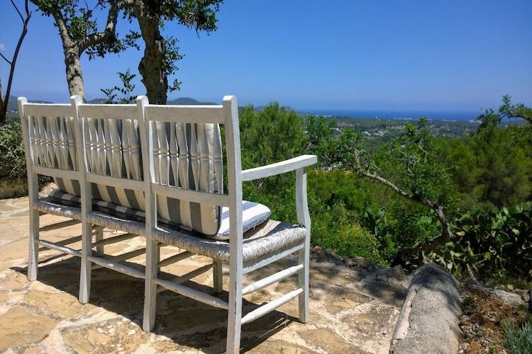 À côté de la maison principale se trouve une maison d'hôtes pour six personnes, où vous avez également une vue sur la mer depuis les portes coulissantes du salon. C'est un endroit calme et donc un lieu idéal pour des retraites de yoga, mais également pour vivre le sentiment ultime d'Ibiza avec la famille ou les amis.