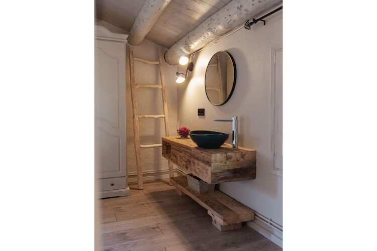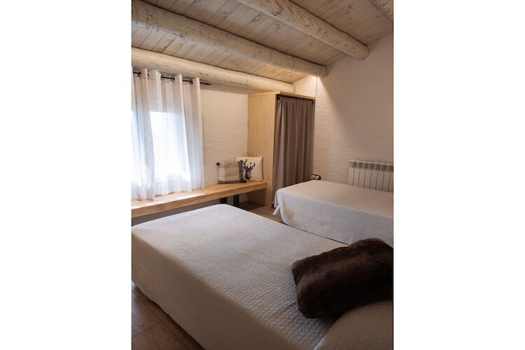 Ancienne grange à foin complètement restaurée, formée de deux logements mitoyens identiques et située dans un endroit très calme, à la campagne, en Pré-Pyrénées. Intérieur rustique avec parquet et plafond à colombages. Il est possible d'acheter les produits du potager, dépendant de la periode. A 100 mètres de là se trouve une chapelle vieille de 400 ans appartenant à la maison. A 800 mètres, il y a deux restaurants typiquement régionaux dont un avec piscine. Supermarché à 20 km.