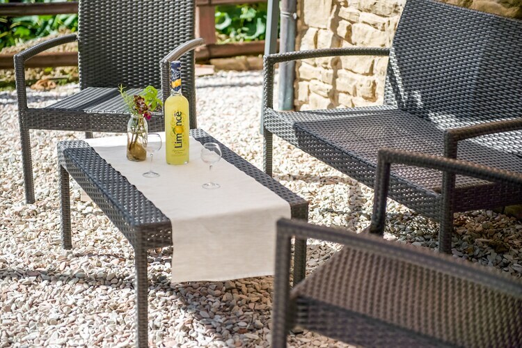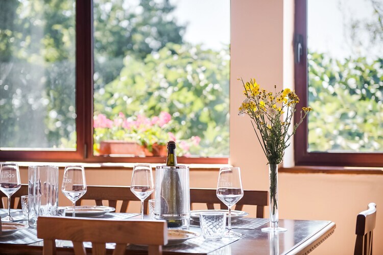 Détendez-vous sur la terrasse meublée et dans le luxuriant jardin privé offrant une vue panoramique sur la campagne, idéal pour un café matinal ou des conversations en soirée. Pour les plus curieux, six vélos électriques sont disponibles sur demande (en supplément).