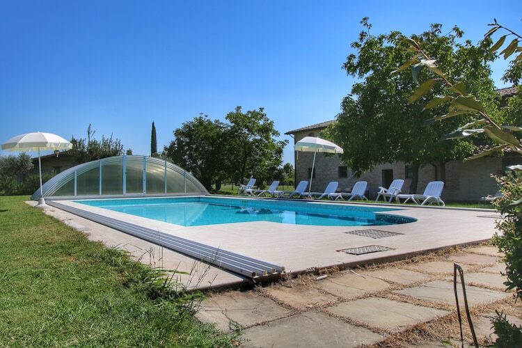 Nichée au cœur de vignobles vallonnés et d'oliveraies, cette demeure paisible offre une escapade idyllique au cœur de l'Ombrie, site classé au patrimoine mondial de l'UNESCO. Offrant une vue imprenable sur Assise et un environnement paisible, la propriété est idéale pour les familles ou les groupes en quête d'intimité, de confort et d'une touche de luxe. Détendez-vous dans la piscine privée ou dans le bain à remous apaisant tout en admirant le paysage paisible.