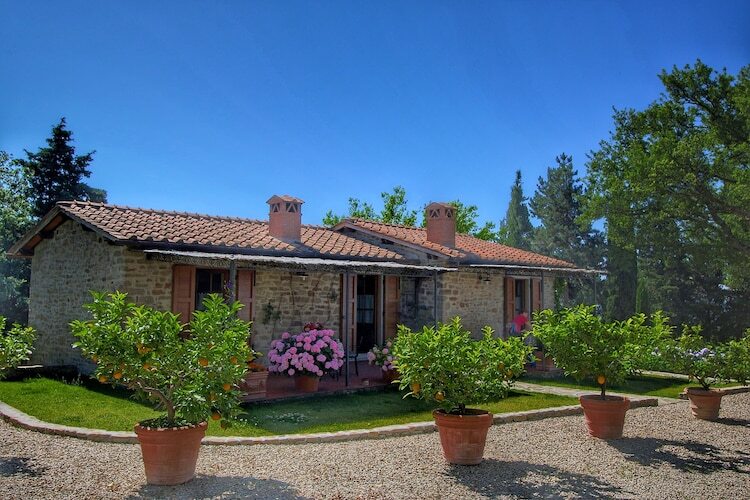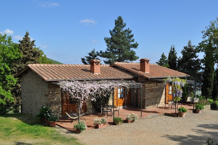 Cette maison de vacances se situe au milieu des collines du Valdarno Arentino à 600m d'altitude et offre à ses visiteurs une vue imprenable sur les vallées de la Toscane. La villa Clemacine se trouve sur les terres d'un Agriturismo, entourée de vignes, d'oliveraies et de vergers. Une rénovation complète a permis de la remettre dans son état d'origine en sauvegardant ses éléments authentiques. Cette villa a été aménagée dans un style moderne et répond à toutes les exigences du confort de luxe. L'Agriturismo se situe sur des terres boisées de 40 hectares qui font partie d'une réserve naturelle offrant une vie sûre aux lièvres, écureuils, faisans et autres animaux que vous risquez de rencontrer lors de vos promenades. Une piscine en plein air commune est à votre disposition, qui vous offre en même temps une vue superbe sur la Pieve di Gropina. Les romantiques d'entre nous seront émerveillés de vivre un coucher du soleil depuis la piscine! A côté de l'ensemble se trouve une petite église ancienne qui servait autrefois de point de rencontre aux fermiers de la région. L'Agriturismo produit également du vin blanc et du vin rouge de 'Chianti' (D.O.C.G.), ainsi que l'huile d'olive. Sa situation favorable permet de faire des excursions intéressantes aux villes anciennes comme Florence, Arezzo et Sienne.