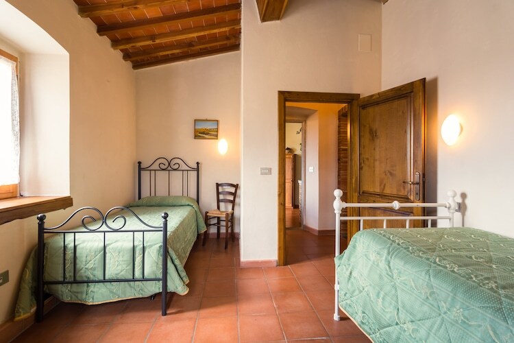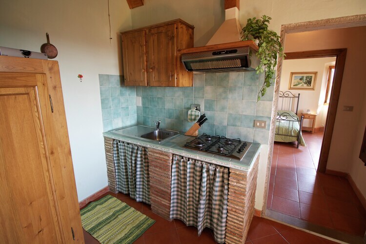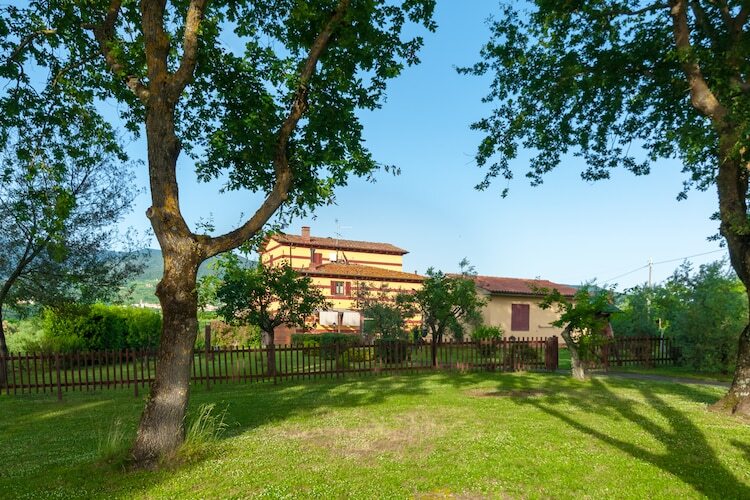Nichée dans la paisible campagne de Pian di Scò, cette charmante demeure est un havre de paix et de beauté naturelle. Entourée de collines et d'oliveraies, elle est idéale pour les couples ou les familles en quête de calme et de charme toscan authentique. Le grand jardin commun offre un espace de détente sous les cyprès.