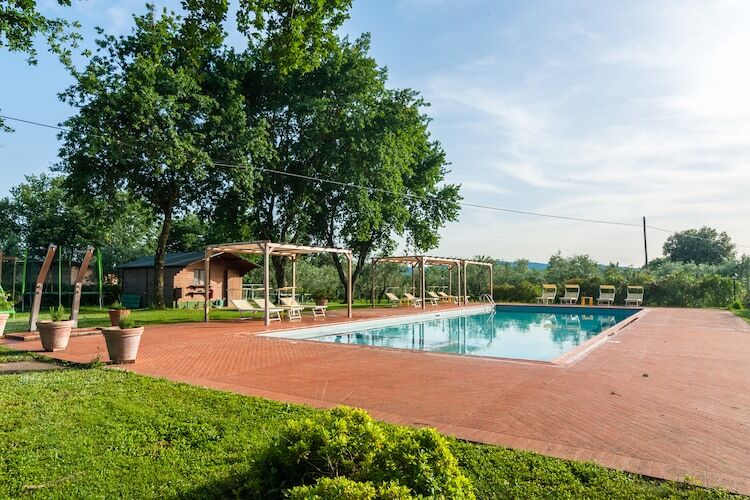 Passez des après-midi ensoleillés dans la piscine commune, que vous profitiez d'une baignade rafraîchissante, vous prélassiez au bord de l'eau avec un livre ou regardiez les enfants s'amuser. Le jardin offre de nombreux espaces pour que les enfants puissent explorer et jouer librement, avec des équipements de jeux dédiés pour leur divertissement. Pour plus de divertissements en famille, l'espace ping-pong est idéal pour des matchs amicaux et des jeux locaux à apprécier sous le soleil de Toscane. Le soir, allumez le barbecue pour un dîner en plein air décontracté composé de produits frais locaux, idéal pour de longues conversations sous le ciel étoilé.
