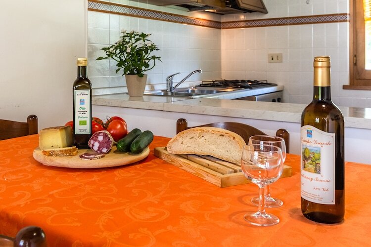 Chaque appartement dispose d'une terrasse privée pour se détendre en toute tranquillité. Un four à pizza et un barbecue sont à la disposition des hôtes. Le petit-déjeuner ou le dîner peuvent être servis sur demande. Le propriétaire est un excellent cuisinier ; si vous en avez l'occasion, profitez d'un dîner toscan dans une ferme. La cuisine est préparée à partir de produits frais. La piscine avec vue panoramique se trouve derrière les appartements, offrant ainsi un cadre paisible dans le jardin. Elle comprend un solarium avec transats, parasols et douche. Une partie du jardin est équipée de jeux pour enfants. Vous pourrez faire des promenades à pied ou à vélo dans les environs.