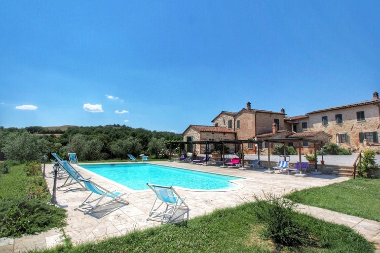 Appartement Terra est l'un des quatre appartements. Il est un appartement très spacieux et meublé avec goût. Il ya aussi une belle piscine avec des parasols et des chaises pour se détendre et profiter de la campagne toscane. Terra appartement a sa propre table et chaises avec parasol sur la cour caractéristique près de l'entrée de l'appartement. Deux autres appartements ont aussi leur propre table et chaises dans la cour. .