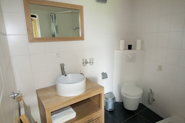Rez-de-chaussée: (hall d'entrée) Au 1er étage: (chambre avec salle de bains(lit double, douche, lavabo, WC)) Au 2ème étage: (coin cuisine(plaque de cuisson(4 foyers), cafetière/percolateur(filtre), micro ondes, combinaison réfrigérateur/congélateur), salle à manger-salon(TV(satellite, chaînes de télévision néerlandaises)), terrasse sur le toit, mobilier de jardin) sanitaires(sèche-linge(partagé avec d'autres clients, payant), lave-linge (partagé avec d'autres clients, payant)), trampoline(partagé avec d'autres clients), étang, piscine(partagé avec d'autres clients, chauffée, ouvert de 1/2 Mai jusqu'à (inclus) 1/2 Sept), tennis de table/ping-pong