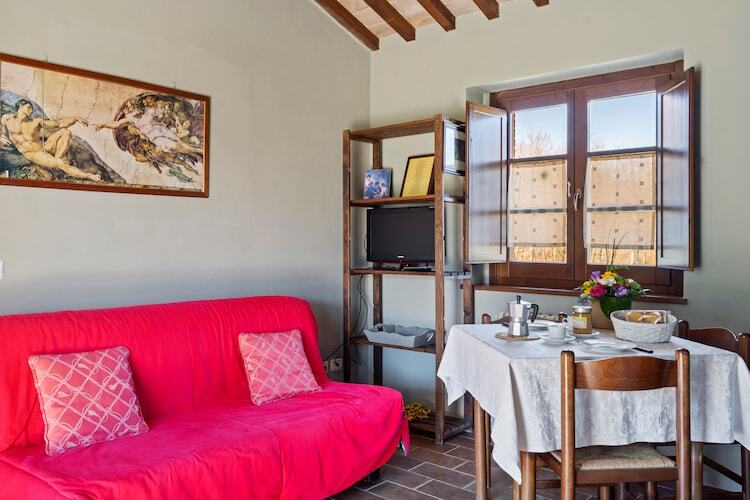 Situé dans la magnifique ville perchée de Città della Pieve, ce charmant cottage peut accueillir jusqu'à quatre personnes en quête de détente au cœur de l'Ombrie. Situé à seulement 40 km des eaux scintillantes du lac de Bolsena, la région vous invite à la baignade, à la navigation et à la détente au bord du lac. Les amateurs de culture pourront découvrir l'architecture surréaliste de La Scarzuola ou se plonger dans l'histoire ancienne au Musée de la Cathédrale de Chiusi. Le Centre Historique de Chiusdino, avec son ambiance médiévale, ajoutera une touche culturelle unique à votre séjour.