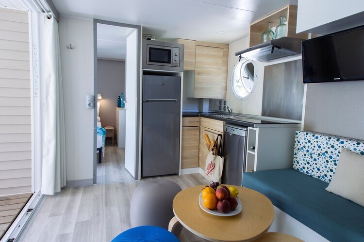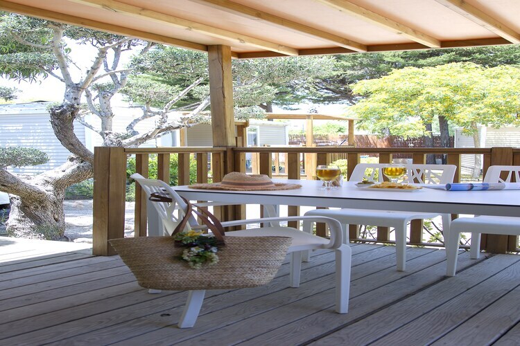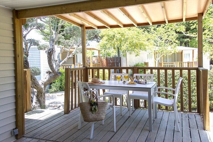 Les chalets possèdent la climatisation, une cuisine ouverte avec lave-vaisselle et micro-ondes, et deux salles de bains avec douche et WC. Vous profiterez d'une terrasse/véranda (couverte) et d'une place de parking. Un supplément de € 12/nuit est à payer sur place pour une seconde voiture éventuelle.