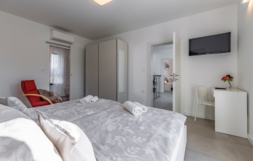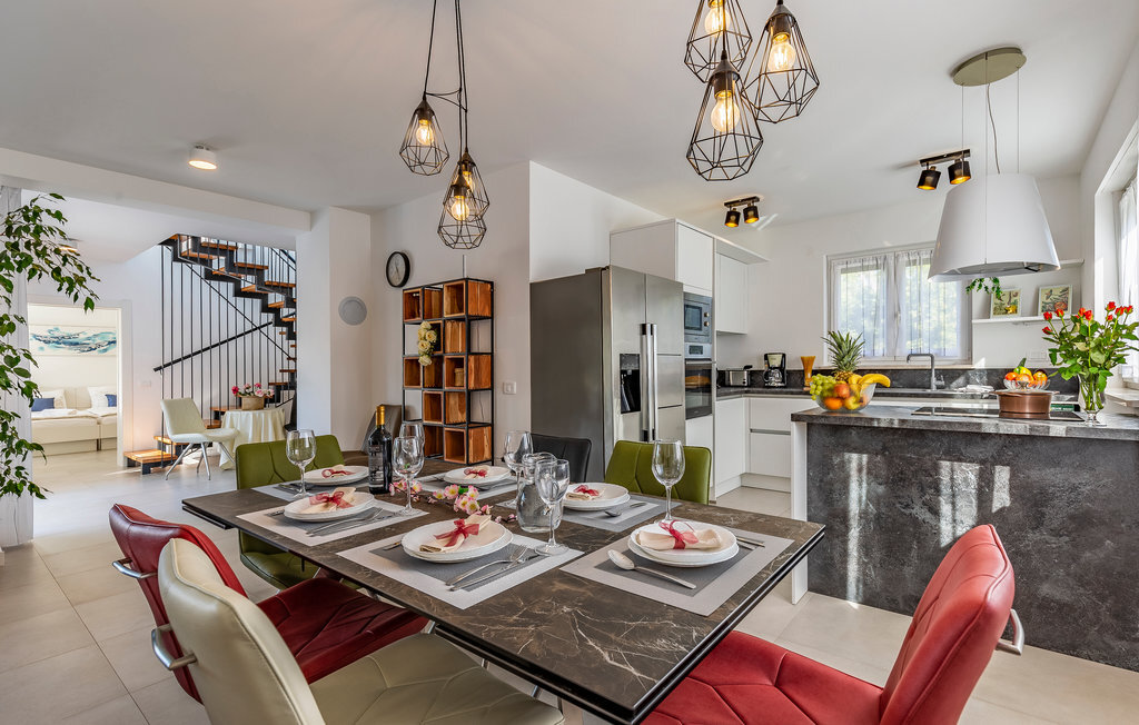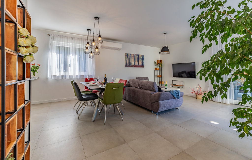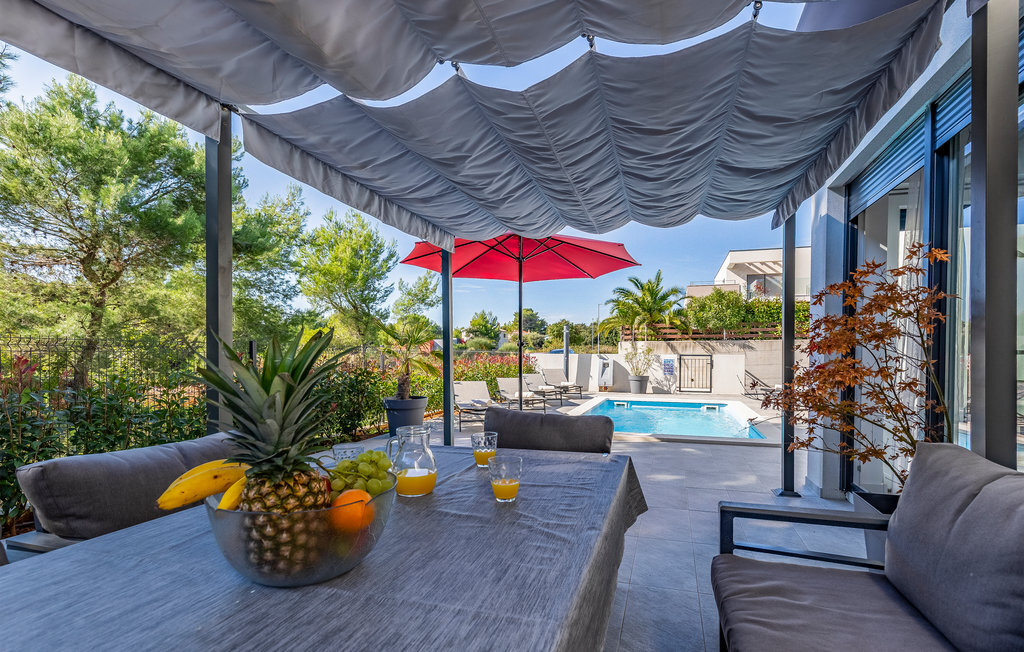 Cette maison de vacances claire et conviviale offre de nombreux coins agréables, même pour les grands groupes. L'une des chambres à coucher est accessible aux personnes handicapées et la maison de vacances est aménagée de manière moderne et confortable. Cette magnifique maison de vacances séduit particulièrement par son magnifique espace extérieur. Vous passerez de nombreuses heures agréables au bord de votre piscine privée et dans celle-ci, tout en profitant du temps magnifique de la Croatie. Détendez-vous sur l'une des confortables chaises longues pendant que les enfants barbotent dans la piscine. Sur votre terrasse en partie couverte, vous pourrez prendre de nombreux repas en commun ou terminer la journée par un agréable barbecue.