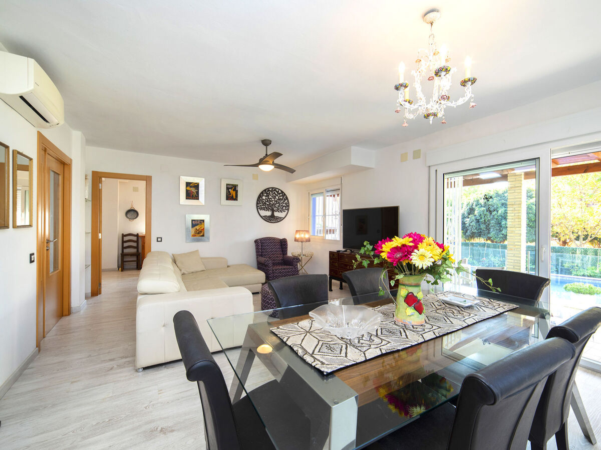 Spacieux et clair, aménagement confortable et agréable: séjour/salle à manger ouvert avec Télévision numérique, air-conditionné, ventilateur et chauffage à air chaud.