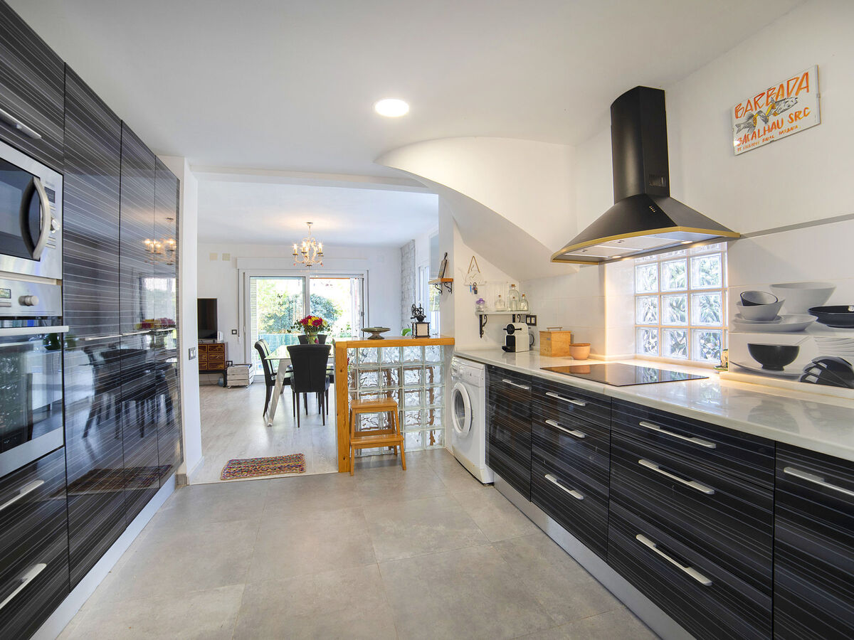 Cuisine ouverte (four, lave-vaisselle, 3 plaques à induction, grille-pain, bouilloire électrique, micro-ondes, cafetière électrique).