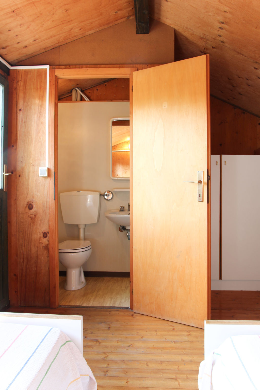 Aménagement fonctionnel: séjour/chambre à coucher avec 1 divan-lit double et 1 x 2 lits superposés, table pour les repas, TV (satellite), air-conditionné et chauffage à air chaud.