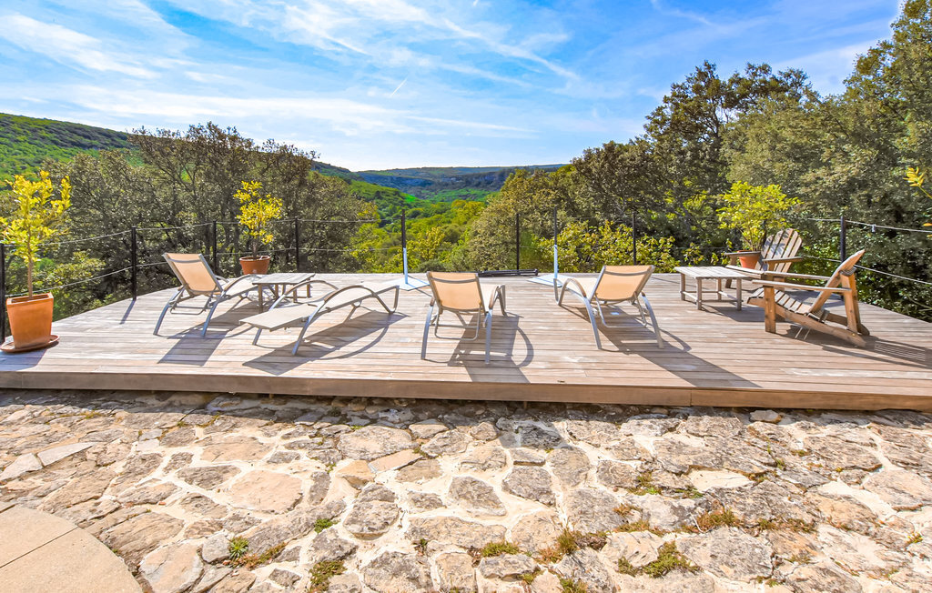 Bien-être à l'extérieur : Location de vacances disposant de chaises-longues et d'un ou plusieurs équipements tels que piscine extérieure, jacuzzi extérieur, lit à baldaquin de jardin etc...