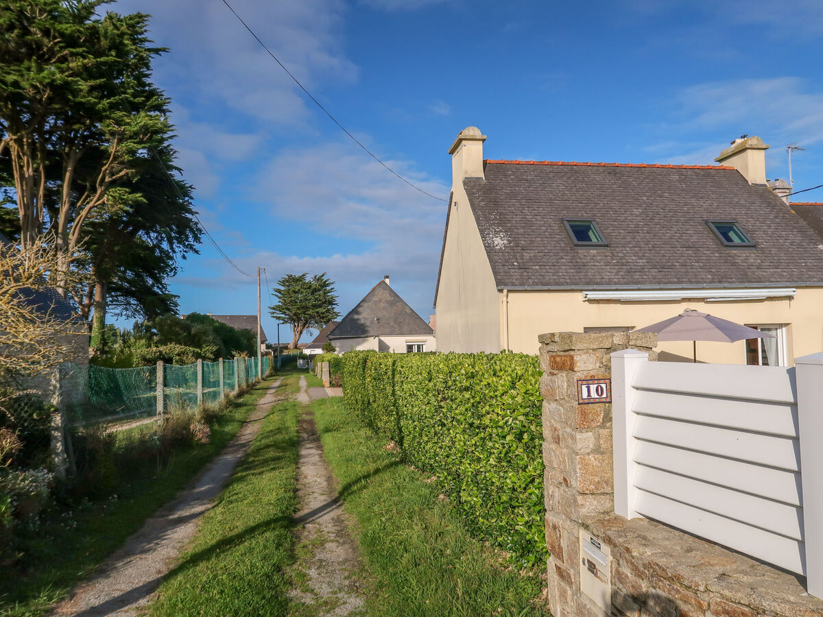 Dans le quartier d'Erléac'h, Saint Pabu, dans un quartier résidentiel, à 400 m de la mer, à 400 m de la plage, dans une impasse, orientée sud-ouest.