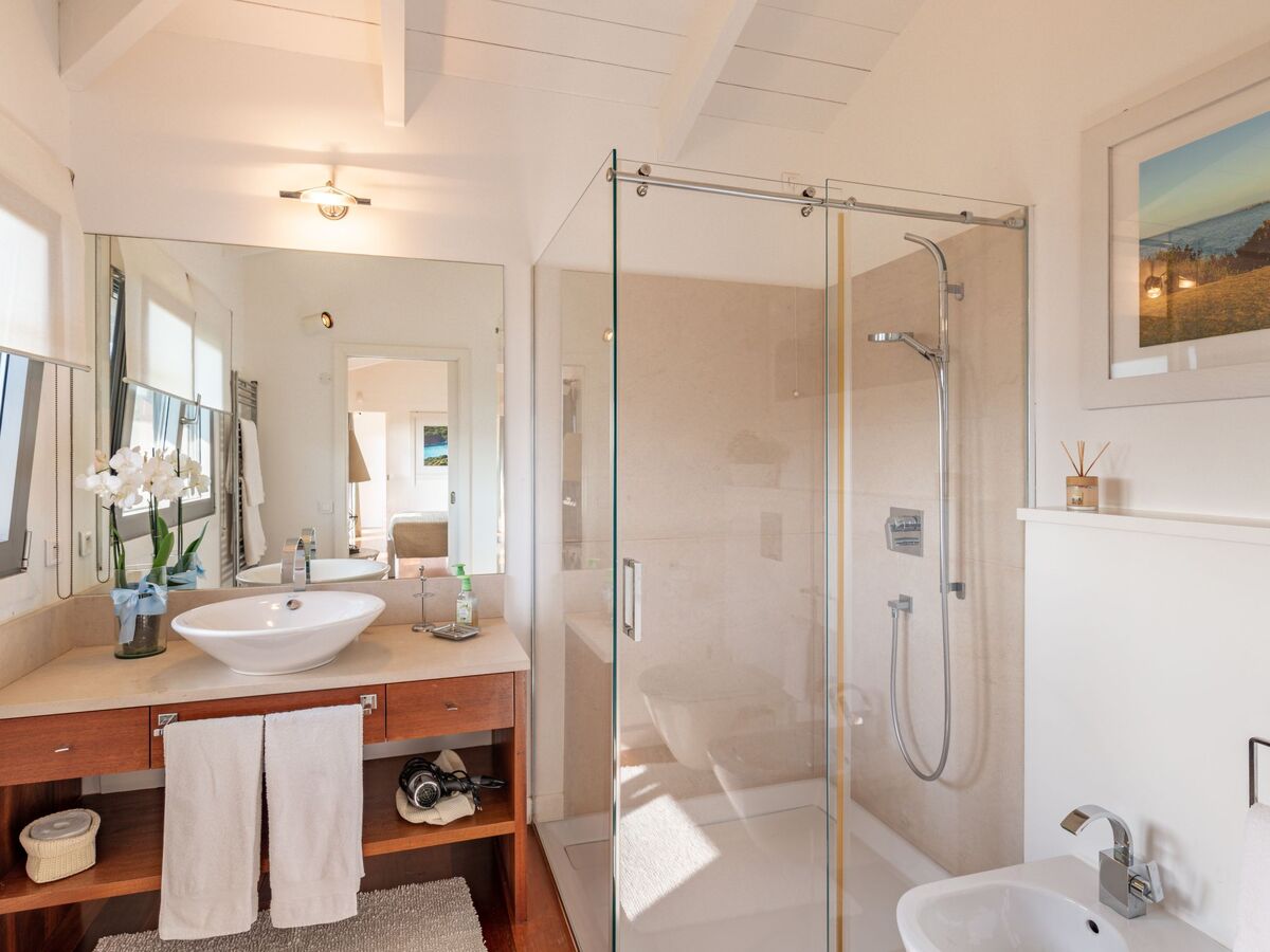 À l'étage supérieur: 1 grande chambre avec 1 grand-lit (180 cm, longueur 190 cm), douche/bidet/WC.