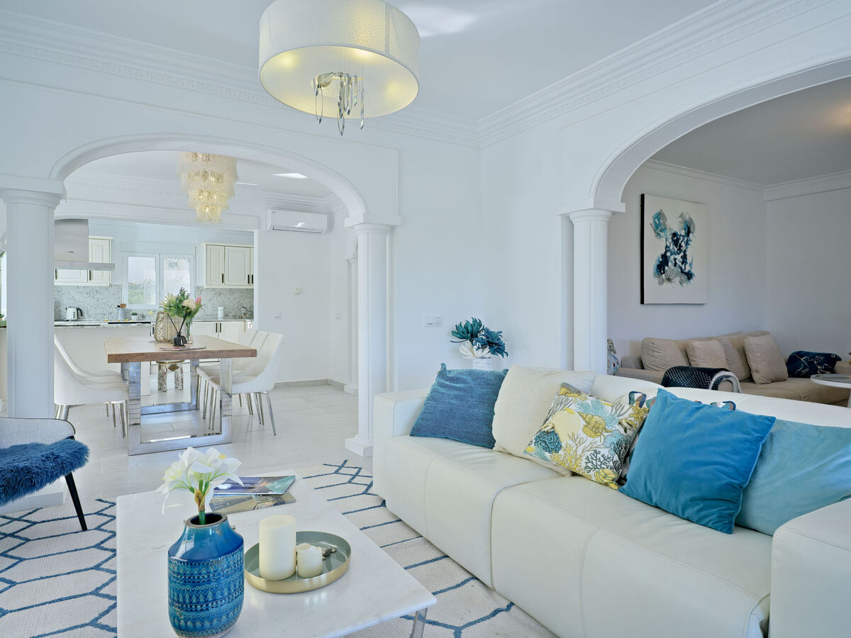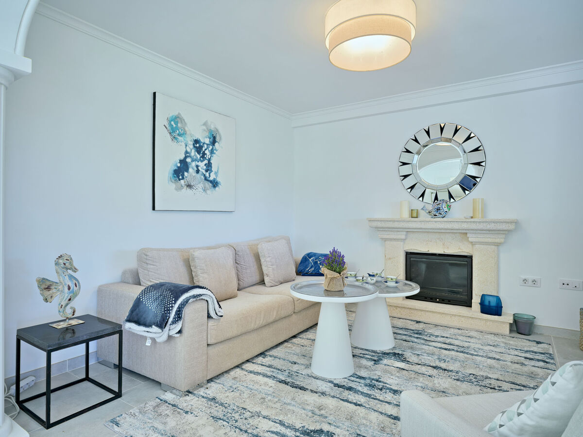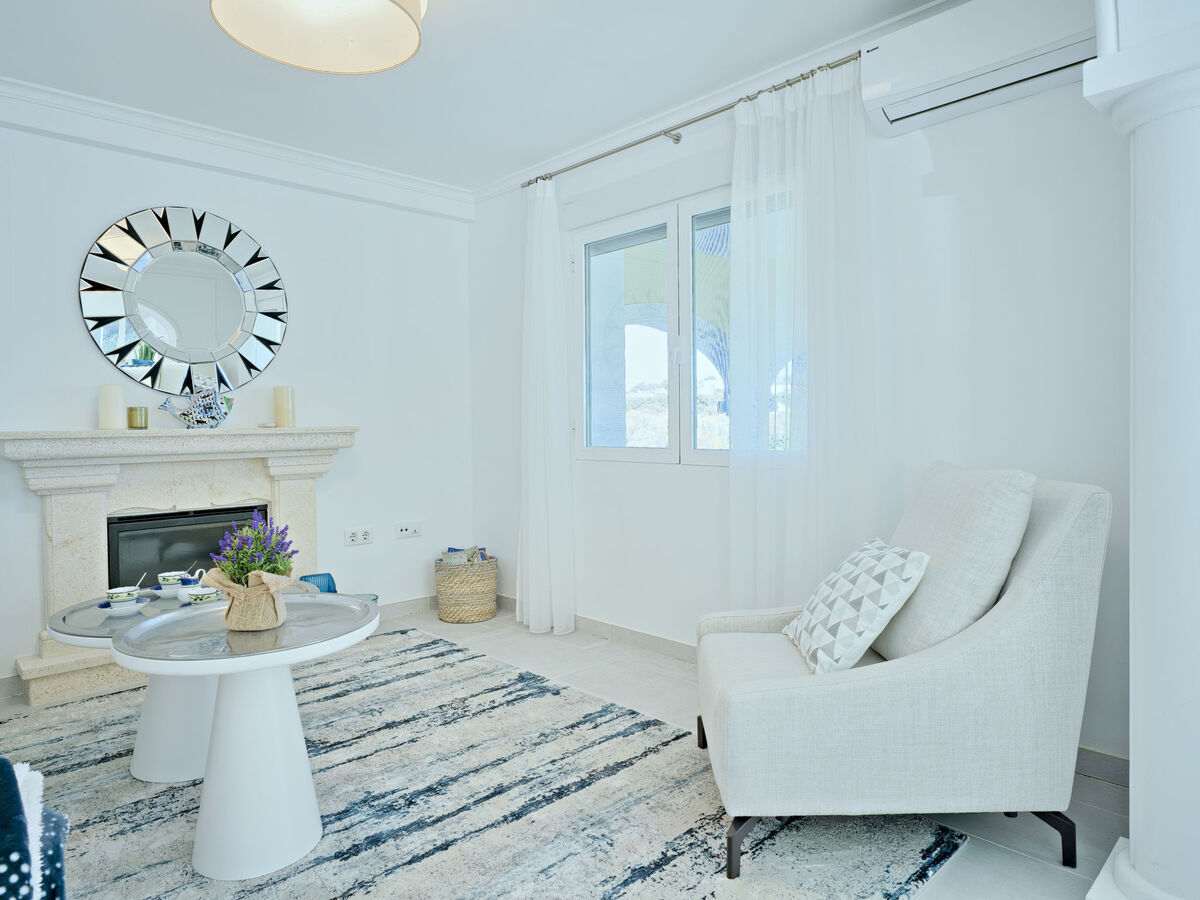 Spacieux et clair, aménagement très agréable et luxueux: séjour/salle à manger avec cheminée, TV (satellite), chauffage a gaz, air-conditionné et chauffage à air chaud.