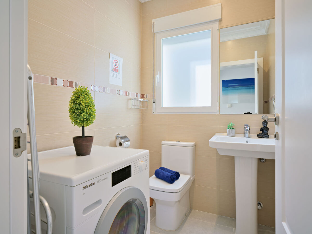 A disposition: lave-linge, fer à repasser, chaise haute pour enfant, lit bébé, sèche-cheveux.