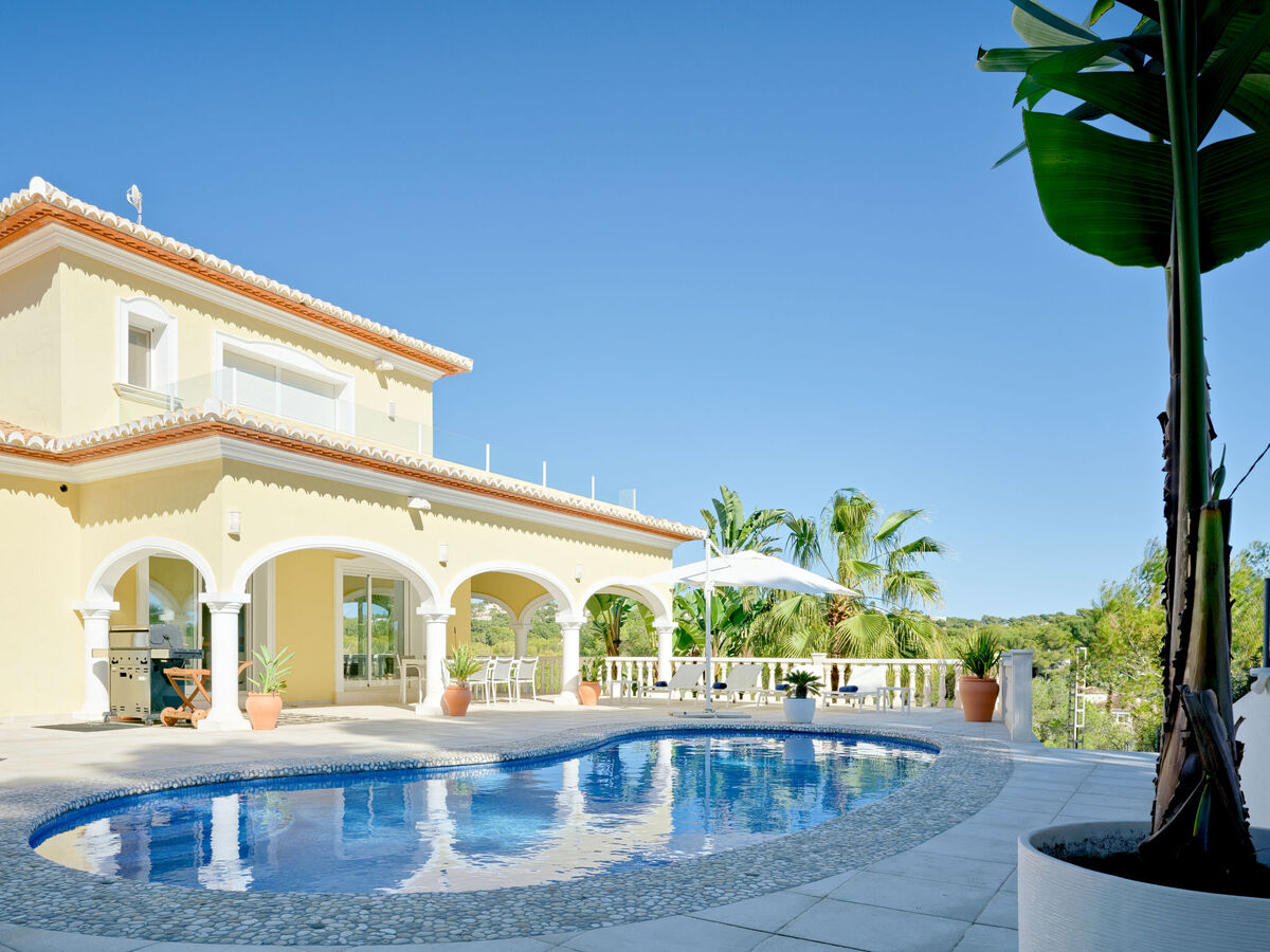 A usage privé: beau jardin sur plusieurs niveaux entretenu, piscine en forme d’haricot (9 x 4 m, profondeur 85 - 210 cm, disponibilité saisonnière: 01.Jan.