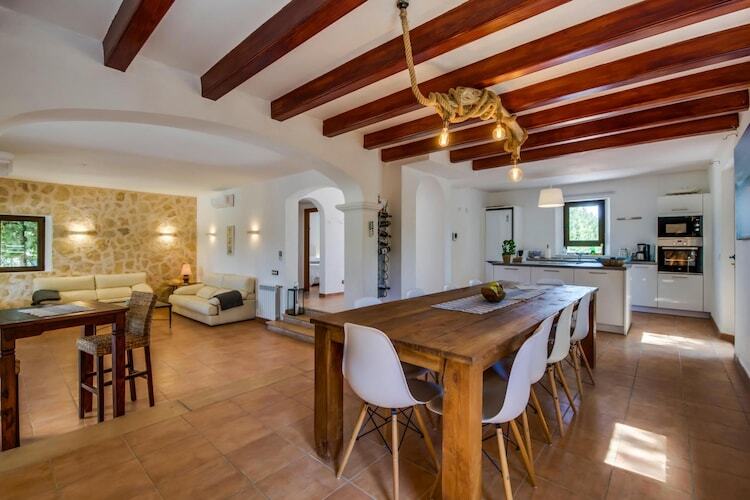 Charmante Finca avec Mallorcan Flair. Les éléments modernes et traditionnels spécifiques à la campagne sont combinés ici, créant une atmosphère invitante dans la Finca. Avec quatre chambres et trois salles de bains, la Finca de 220 m² offre suffisamment d'espace pour les familles ou des vacances avec des amis. La cuisine bien équipée avec île de cuisine vous invite à cuisiner ensemble le soir. Le salon comprend une table à manger rustique, un coin salon, une télévision de 55 pouces et une cuisinière à bois, ce qui assure une atmosphère chaleureuse. Le salon mène à une terrasse avec une voile de soleil imperméable et une grille, qui invite au barbecue ensemble par beau temps. Une piscine d'eau salée promet de refroidir à chaud jour d'été. La Finca est un véritable paradis pour les enfants. Le jardin spacieux a une balançoire, un sablage, un trampoline et une grande pelouse à jouer. La table de tennis de table, la carte de fléchette et le badmintonnet fournissent également du plaisir aux adultes. Il y a aussi des moutons et des poulets sur un site clôturé. Avec un peu de chance, vous pourrez déguster des animaux de petit-déjeuner frais pendant votre séjour.