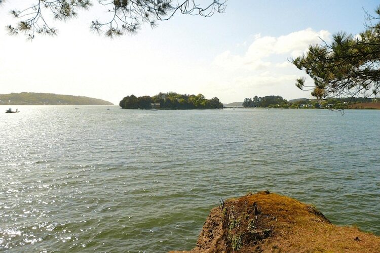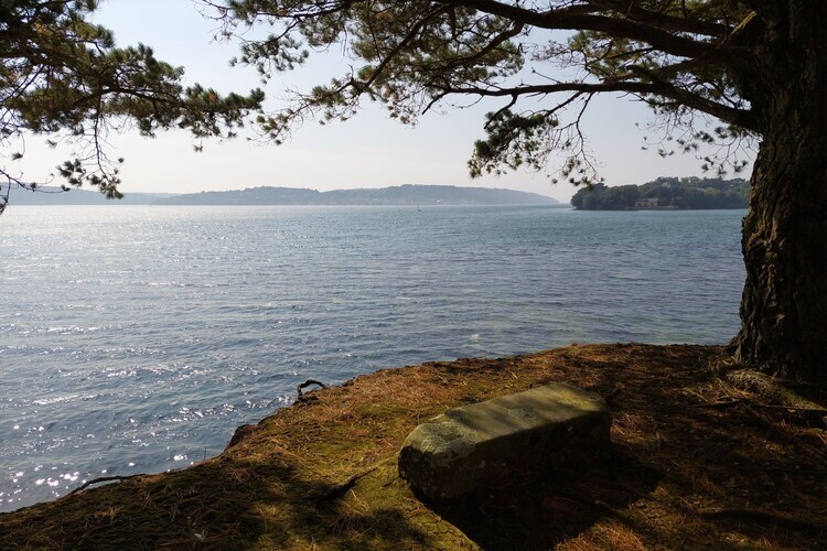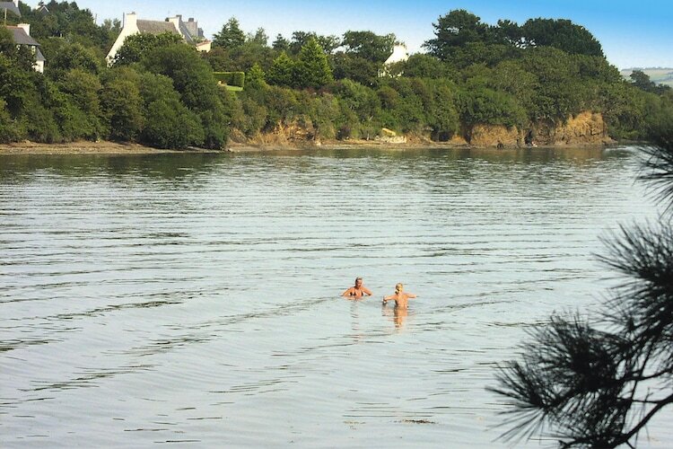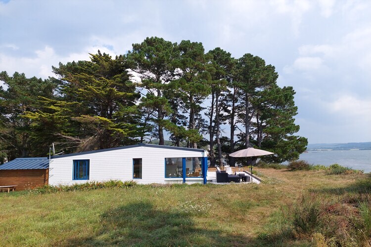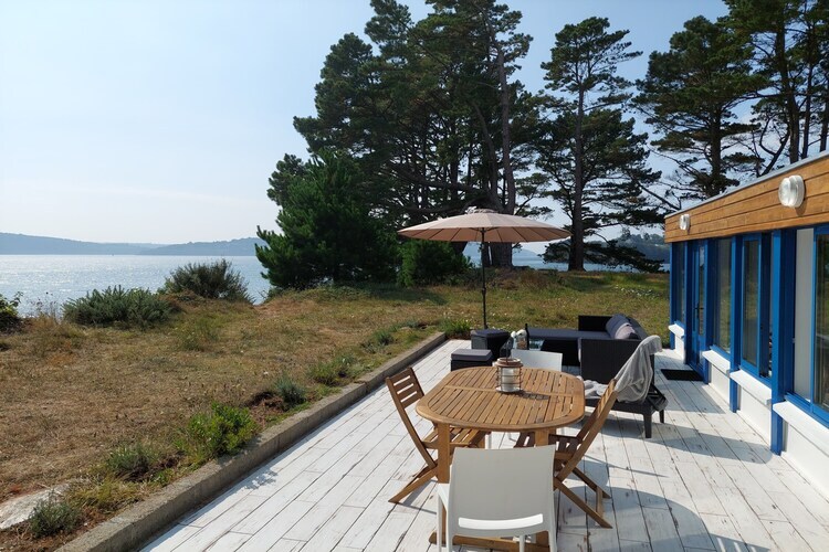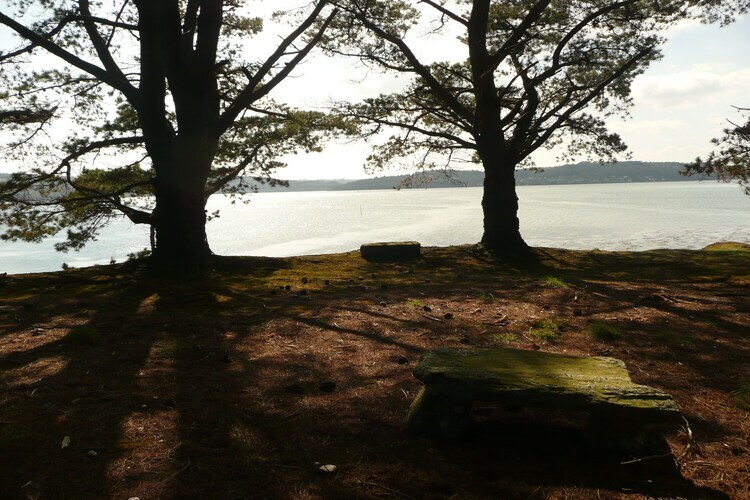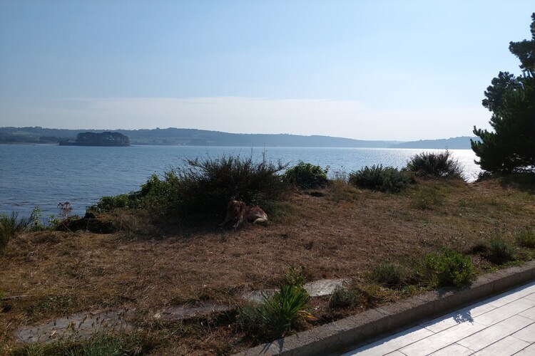 Une vue panoramique à 180° sur la mer devant la maison. Le terrain de 6500 mètres carrés planté de pins est presque lui-même une île. La Pointe du Glugeau se trouve à environ 5 km du Faou, face à l'abbaye de Landevennec, sur la presqu'île de Crozon. Sa situation calme et isolée des voisins les plus proches, à environ 300 m, entourée par la mer, vous permet de vivre ici au rythme des marées. Profitez du calme de la mer, des moules et des parcs à huîtres existants et du passage des voiliers et des bateaux de pêche qui contribuent à la détente. Le lieu de pêche se trouve juste à côté de la propriété, n'oubliez donc pas vos cannes. La pointe la plus à l'ouest, entourée de pins, est utilisée le soir pour les couchers de soleil. Un escalier mène directement à la mer. Si vous souhaitez prendre un bateau ou un kayak, vous avez trouvé ici l'endroit parfait. Vous pouvez vous baigner directement devant la maison, les longues plages de sable se trouvent sur la presqu'île de Crozon ou à Brest, à 30 km.