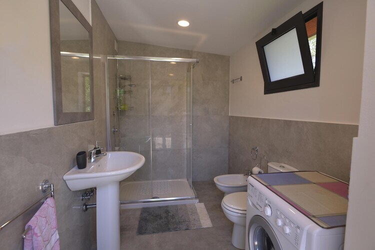 Rez-de-chaussée: (Salle de séjour(TV(satellite)), cuisine(table, foyer(4 foyers, gaz), four, réfrigérateur, air conditioning(paid)), chambre(lit double, air conditioning(paid)), chambre(lit double, air conditioning(paid)), chambre(2x lit simple), salle de bains(douche, WC, bidet), salle de bains(accès par l'extérieur)(douche, WC, bidet)) véranda, coin salon, grill, sèche-linge, douche(extérieur), lave-linge , jardin, mobilier de jardin, transats, parking, parasol, piscine(privé, extérieur, ouvert de 1/2 Mai jusqu'à (inclus) 1/2 Sept), chaise haute, baby crib(paid)