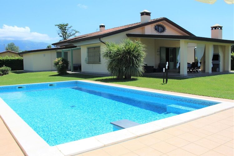 Maison de vacances avec piscine à proximité des longues et belles plages de sable de la côte de la Versilia. La maison de style rustique meublée avec goût est située sur une pelouse bien entretenue avec des palmiers. Avec une surface habitable de 160 mètres carrés, 4 chambres et 3 salles de bains, il y a suffisamment d'espace pour accueillir jusqu'à sept personnes. Toutes les chambres sont au rez-de-chaussée. Mais votre endroit préféré sera certainement la magnifique terrasse, parfaite pour un petit déjeuner copieux et de longues soirées barbecue. Détendez-vous dans la grande piscine ou jouez au ping-pong ou au baby-foot pour changer. Les plages de sable en pente douce de Lido di Camaiore, que vous pouvez rejoindre en environ 15 minutes en voiture, sont idéales pour les enfants. Promenez-vous le long de la promenade de la plage de palmiers avec des boutiques et des cafés et visitez le marché hebdomadaire bien connu le lundi.Extras inclus : WLAN1 bouteille de vin et une bouteille d'eau à l'arrivée. Mobilité : Ne convient pas aux personnes à mobilité réduite