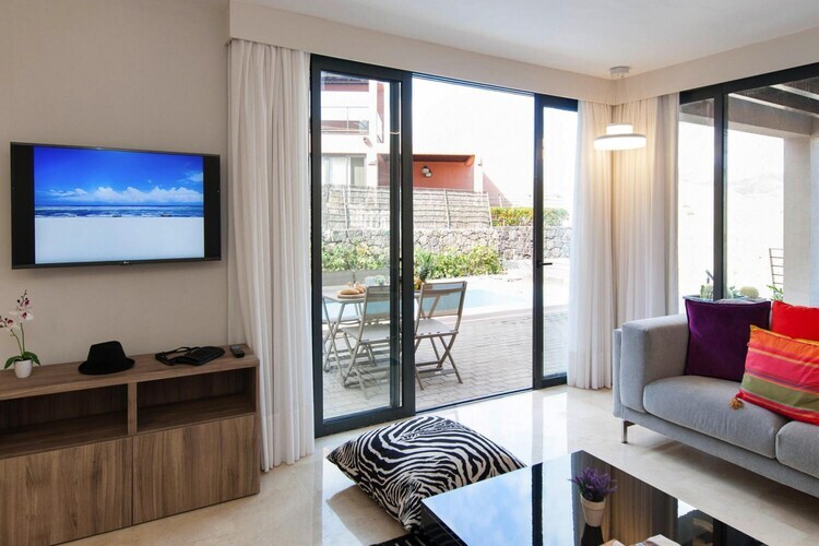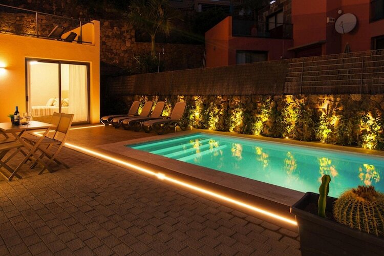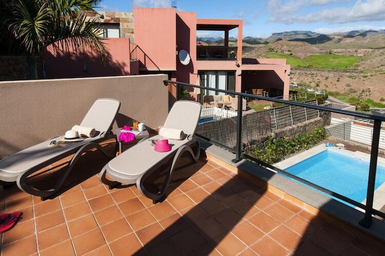 Cette maison de vacances avec piscine extérieure privée (chauffée) offre une vue magnifique sur le parcours de golf et se trouve à seulement 15 minutes en voiture de la plage. Profitez de vos vacances à Gran Canaria dans la villa parfaitement équipée et détendez-vous sur la terrasse couverte. Profitez du service quotidien de livraison de pain. Ce complexe résidentiel exclusif en bordure du complexe de golf se situe dans un paysage unique dans les montagnes de Maspalomas. Dans les environs immédiats, vous pouvez faire vos courses tous les jours au supermarché et dans un restaurant, vous serez gâté par des délices culinaires. Les centres touristiques populaires de Maspalomas et Playa del Ingles sont accessibles en moins de dix minutes en voiture. Les clients des villas peuvent utiliser les parcours de golf nord et sud. Le golf Sud (18 trous) est un par de 71 coups sur 6 112 mètres, le golf Nord (18 trous) fait 5 524 mètres de long et a un par de 72 coups. Les hôtes de la villa bénéficient d'une réduction sur les green fees Extras inclus : nettoyage final et nettoyage intermédiaire (hebdomadaire), forfait blanchisserie, coûts énergétiques basés sur la consommation, service de livraison de petits pains, 15 % de réduction sur les green fees, pack de bienvenue.