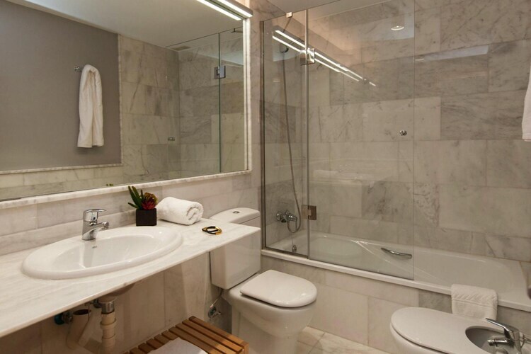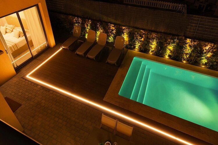 cuisine ouverte(bouilloire, plaque de cuisson, cafetière/percolateur, four, micro ondes, lave-vaisselle , combinaison réfrigérateur/congélateur), salle à manger-salon(TV(satellite), Lecteur DVD), chambre avec salle de bains(lit double, baignoire, WC, sèche-cheveux), chambre avec salle de bains(lit simple, lit simple, baignoire, WC, bidet, sèche-cheveux), sèche-linge, lave-linge , chauffage, climatisation, terrasse(couverte), mobilier de jardin, parking, chaises longues, piscine(privé, extérieur, chauffable), chaise haute, baby crib(free)