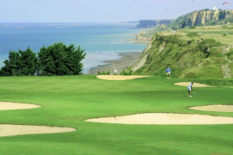 Cette résidence de vacances familiale avec ses 17 appartements et environ 119 maisons de vacances avec balcon ou terrasse et vue sur le golf est située dans un écrin de verdure au milieu du golf d'Omaha Beach. Port-en-Bessin est situé entre Grandchamp et Arromanches, au cœur de la région du Bessin. Le port de la ville, à 2,5 km, vaut le détour. Là-bas, la pêche est encore considérée comme un métier. La cité médiévale de Bayeux offre également de nombreux hauts lieux culturels.
