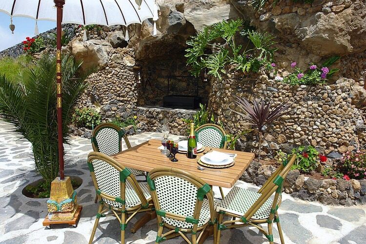 Terrasse en forme de terrasse avec vue imprenable sur la mer! La belle propriété est située à Vera de Erques, un petit village calme du côté sud-ouest de Tenerife. La plupart des maisons de construction traditionnelles sont datentes des XVIIIe ou XIXe siècles. Vera de Erques est à 700 mètres de hauteur et offre une vue magnifique et des couchers de soleil romantiques de la terrasse sur les îles de La Gomera, La Palma et El Hierro. Les plantes canaries et la végétation luxuriante déterminent le paysage de l'ensemble du site. La maison de vacances confortablement meublée, située sur la partie inférieure du site de Caserio Lomo Arriba, offre une pointe de luxe et possède sa propre piscine intérieure avec un éclairage de couleur varié et des escaliers de massage. Trois terrasses, une tonnelle et une relaxation et un bar dans une dépendance rendent votre maison de vacances complète. La zone entière est construite comme une grotte dans la montagne et rayonne une atmosphère très spéciale. Il y a une chaîne stéréo avec des CD, un minibar avec différents types de thé, plusieurs chaises longues et une petite fontaine de koi.