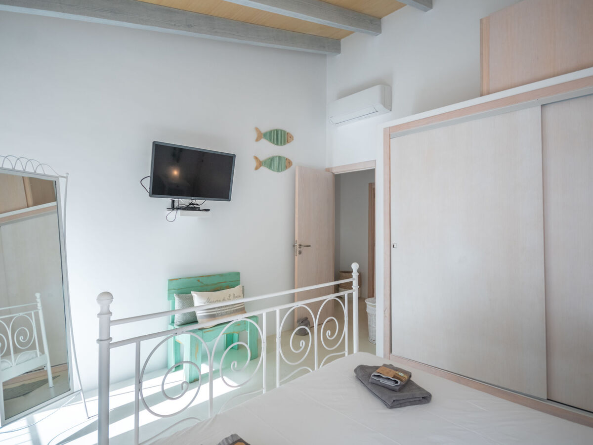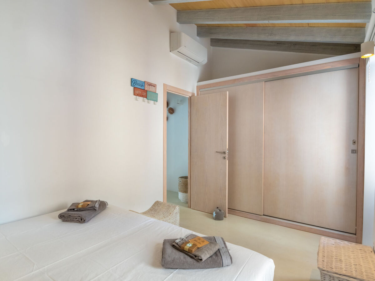 À l'étage supérieur: 1 grande chambre double avec baie vitrée avec 1 grand-lit (150 cm, longueur 190 cm), Télévision numérique, écran plat, air-conditionné et chauffage à air chaud.