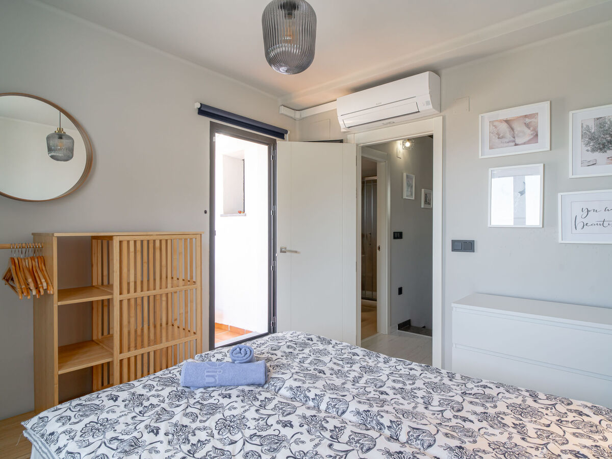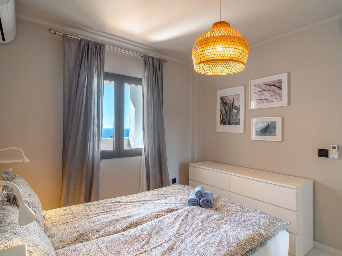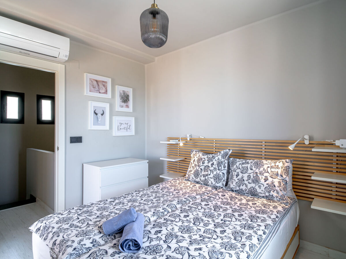 À l'étage supérieur: 1 chambre avec 1 grand-lit (140 cm, longueur 200 cm), air-conditionné.