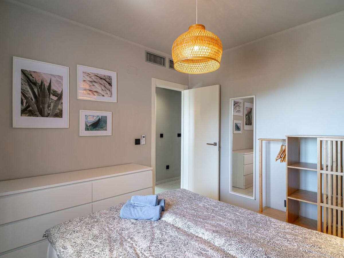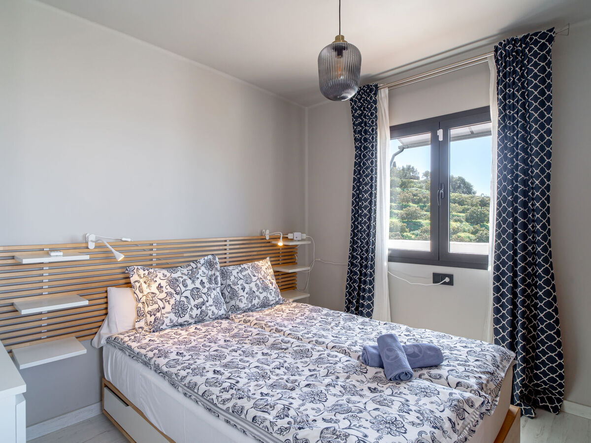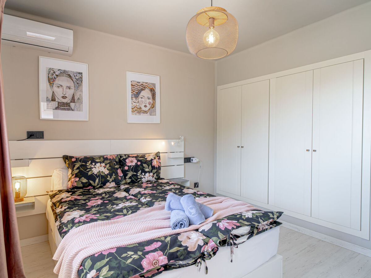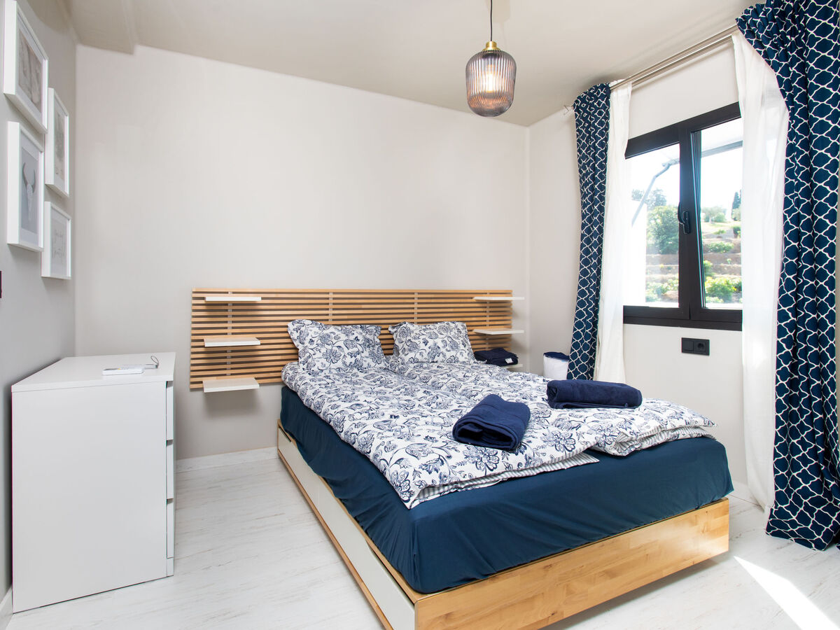 À l'étage supérieur: 1 chambre avec 1 grand-lit (140 cm, longueur 200 cm), air-conditionné.