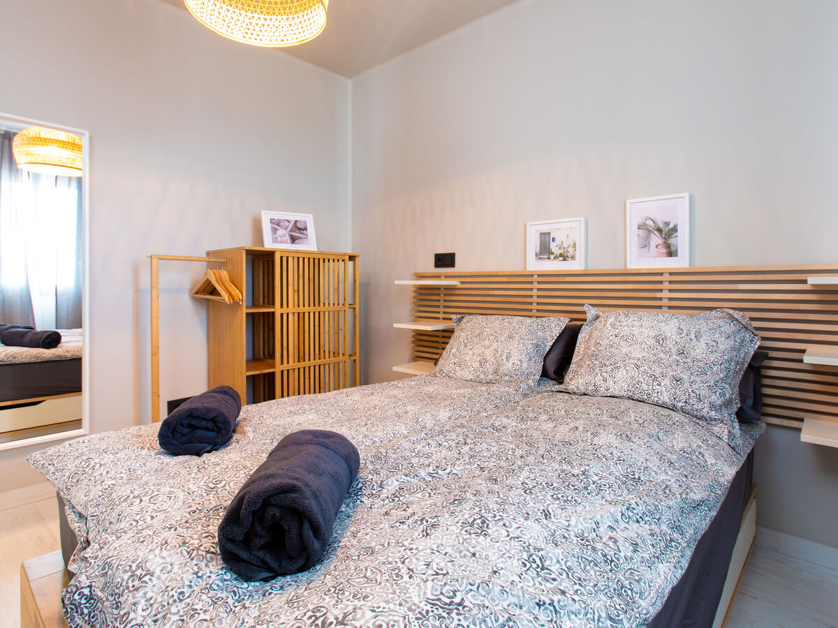 2ème étage: 1 chambre avec 1 grand-lit (140 cm, longueur 200 cm), air-conditionné.