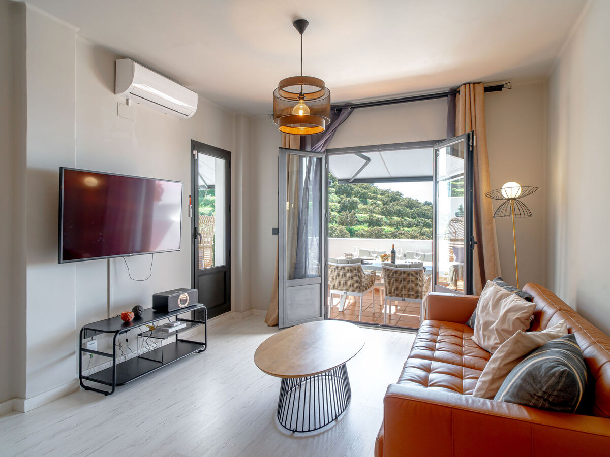 Spacieux et clair, aménagement confortable et de bon goût: séjour/salle à manger avec Télévision numérique et air-conditionné.