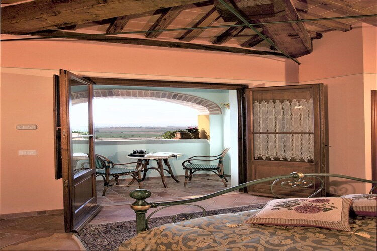 Cette belle villa individuelle de 180 m² avec piscine privée offre 4 chambres pour 8 personnes et 3 salles de bains. Nous sommes au cœur de la Valdichiana, dans une position panoramique d'où vous pourrez profiter d'une belle vue sur le paysage environnant et les Leopoldine, fermes historiques datant du XVIIe siècle, construites par le Grand-Duc Pietro Leopoldo di Lorena. Nous sommes à mi-chemin entre Cortona (14 km) et Montepulciano (25 km), deux beaux villages toscans pleins de charme et d'histoire. L'emplacement est stratégique pour rejoindre toutes les plus belles attractions de la Toscane et l' Ombrie avec des excursions confortables. Pour ceux qui préfèrent la détente, la villa sera le lieu idéal pour passer d' agréables moments de calme à l' intérieur du jardin (entièrement clôturé). Où vous voulez trouver un pavillon de jardin meublé avec un coin salon en plein air et la zone piscine 6X12x2.2, clôturé) équipée de chaises longues et parasols. les caractéristiques de jardin sont complétées par une véranda confortable avec table à manger située devant la porte d'entrée et un barbecue à préparer vos repas en plein air. Il y a aussi une buanderie avec entrée indépendante et un parking à votre disposition. la villa fait partie de la ferme familiale, parmi lesquels la production d'huile, du vin et du miel ainsi qu'une petite production de fruits et légumes de saison.Avec une saveur typiquement toscane, la villa est meublée dans le style typique qui se marie avec le contexte rural environnant et se caractérise par des sols en terre cuite qui sont accompagnés des plafonds typiques avec poutres apparentes, de la cheminée et de belles finitions en pietra serena. L'entrée principale mène à un salon accueillant avec cheminée, table à manger et kitchenette entièrement équipée. Le rez-de-chaussée est complété par deux chambres doubles avec accès direct au jardin et une chambre à deux lits, toutes équipées de A / C et TV SAT. Il y a deux salles de bains avec douche. Attr