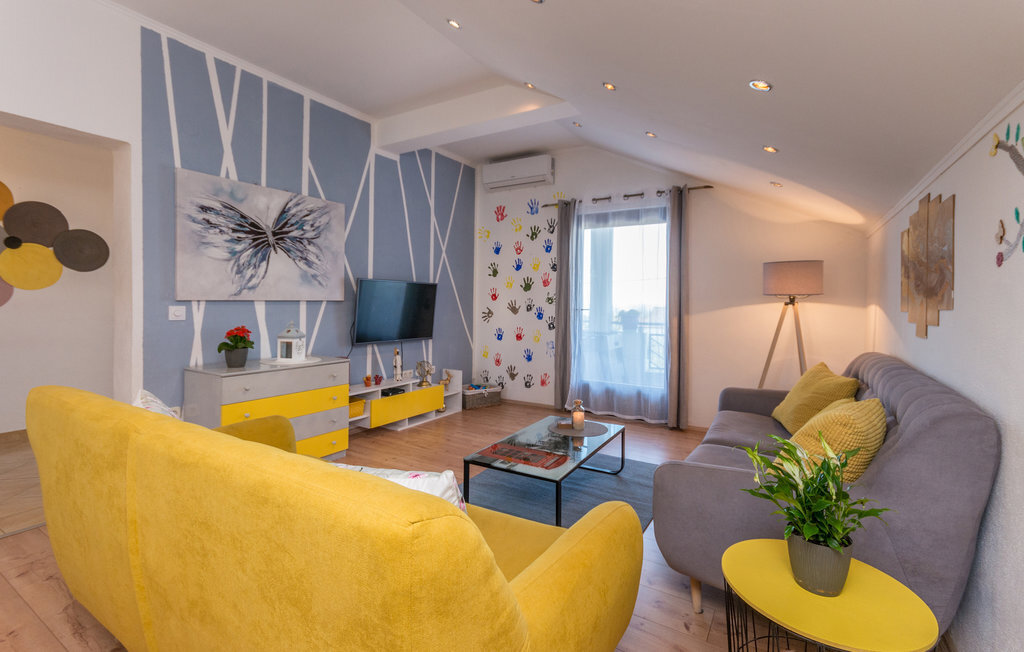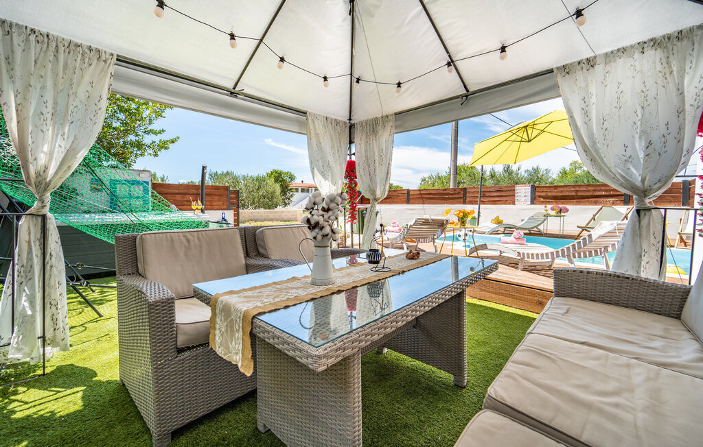 Ce logement confortable avec piscine, auquel on accède par un escalier extérieur, se trouve dans le petit village de Tinj, à côté de la ville de Biograd.