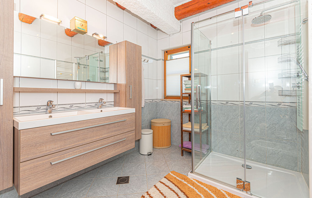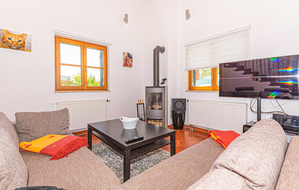 Profitez de votre séjour dans cette maison de vacances élégante qui vous offrira une pause reposante. Le concept d'espace ouvert promet une atmosphère agréable et conviviale, tandis que l'aménagement de qualité assure le confort. La maison dispose d'un salon spacieux avec un fauteuil de massage dans lequel vous pourrez vous détendre. Un coin repas et une cuisine entièrement équipée se trouvent à côté. Au sous-sol, un espace de bien-être et de divertissement privé vous attend avec un sauna et une salle de jeux avec billard, fléchettes et baby-foot.