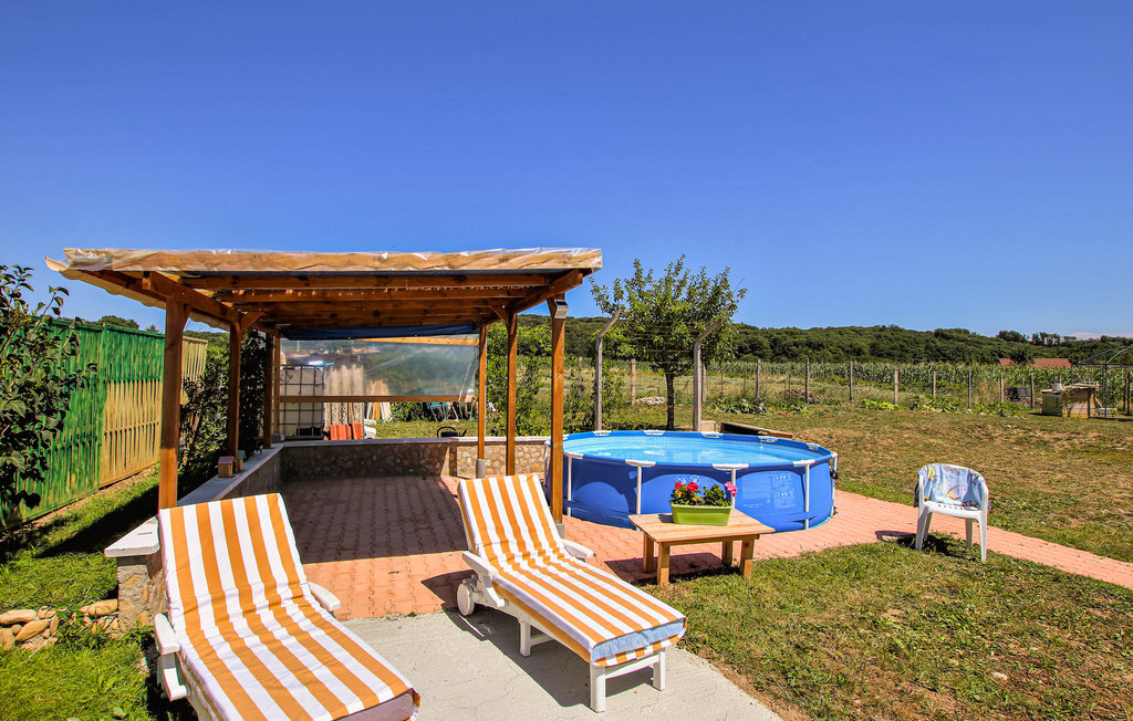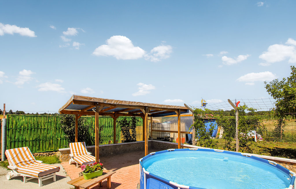 Bien-être à l'extérieur : Location de vacances disposant de chaises-longues et d'un ou plusieurs équipements tels que piscine extérieure, jacuzzi extérieur, lit à baldaquin de jardin etc...