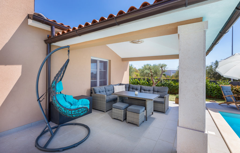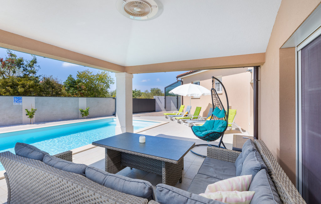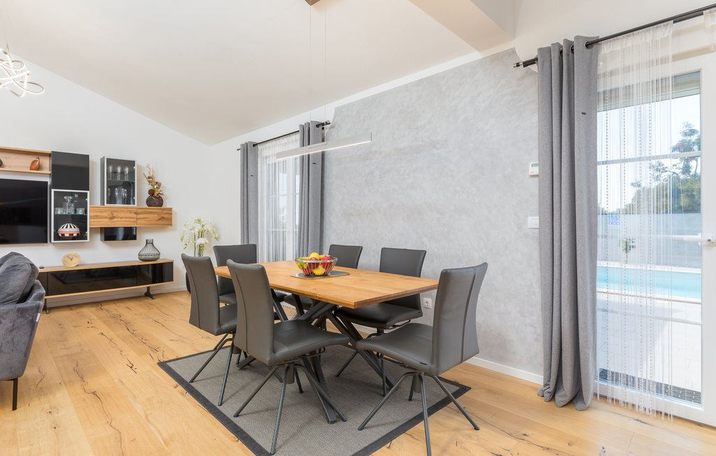 Cette magnifique maison de vacances est idéale pour des vacances entre amis ou en famille. Elle est lumineuse, moderne et confortable et offre tout ce que vous pouvez souhaiter pour des vacances détendues. Toutes les pièces sont climatisées. Depuis le premier étage, vous pourrez profiter d'une vue magnifique sur la mer. La grande terrasse couverte au bord de la piscine vous invite à vous détendre, tandis qu'une cuisine d'été avec cheminée intégrée est à votre disposition pour vous réunir autour d'un repas ou d'une boisson. Outre le jardin et la piscine soigneusement aménagés, profitez des installations supplémentaires que la maison offre aux adultes comme aux plus jeunes. Vous passerez des heures merveilleuses au bord de la piscine et dans celle-ci. Détendez-vous sur l'une des chaises longues pendant que vos enfants barbotent dans la piscine.