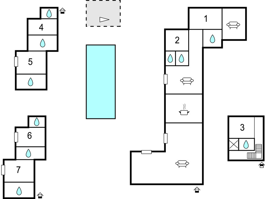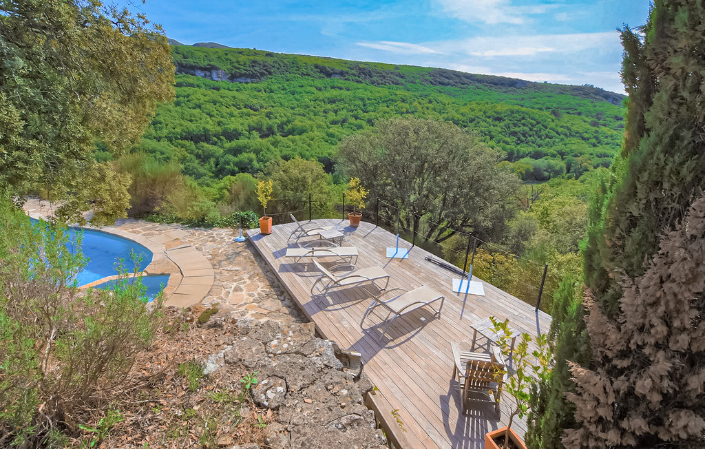 Bien-être à l'extérieur : Location de vacances disposant de chaises-longues et d'un ou plusieurs équipements tels que piscine extérieure, jacuzzi extérieur, lit à baldaquin de jardin etc...