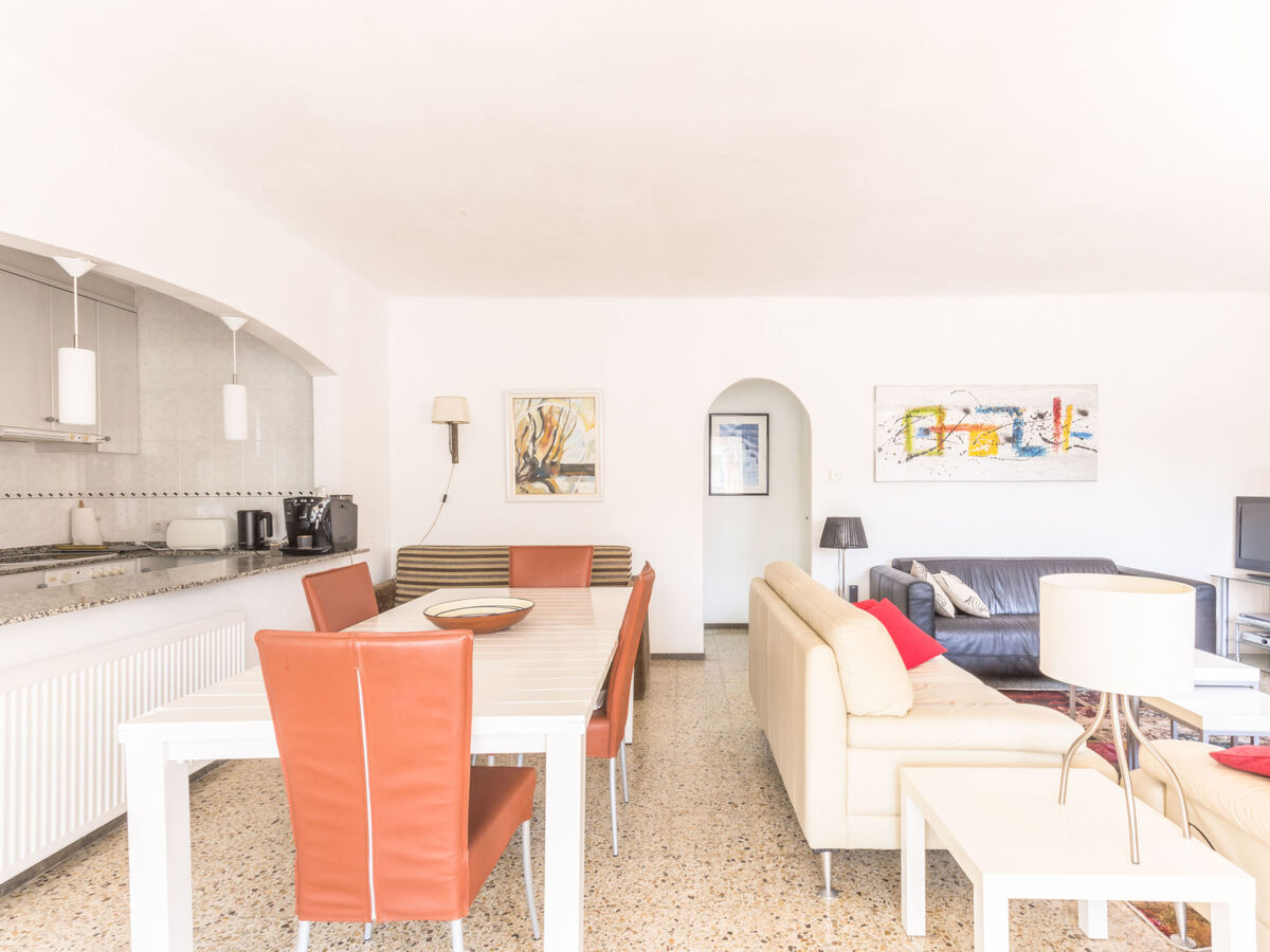 Aménagement confortable: séjour/salle à manger avec 1 divan-lit double et TV (satellite) (écran plat).