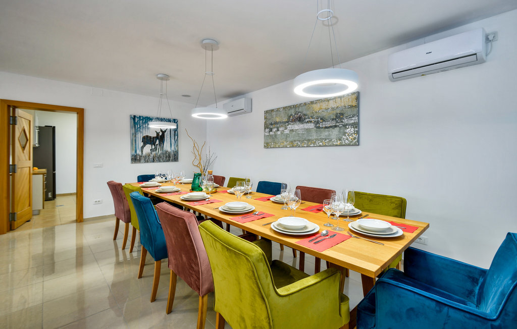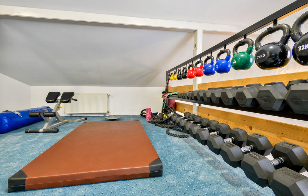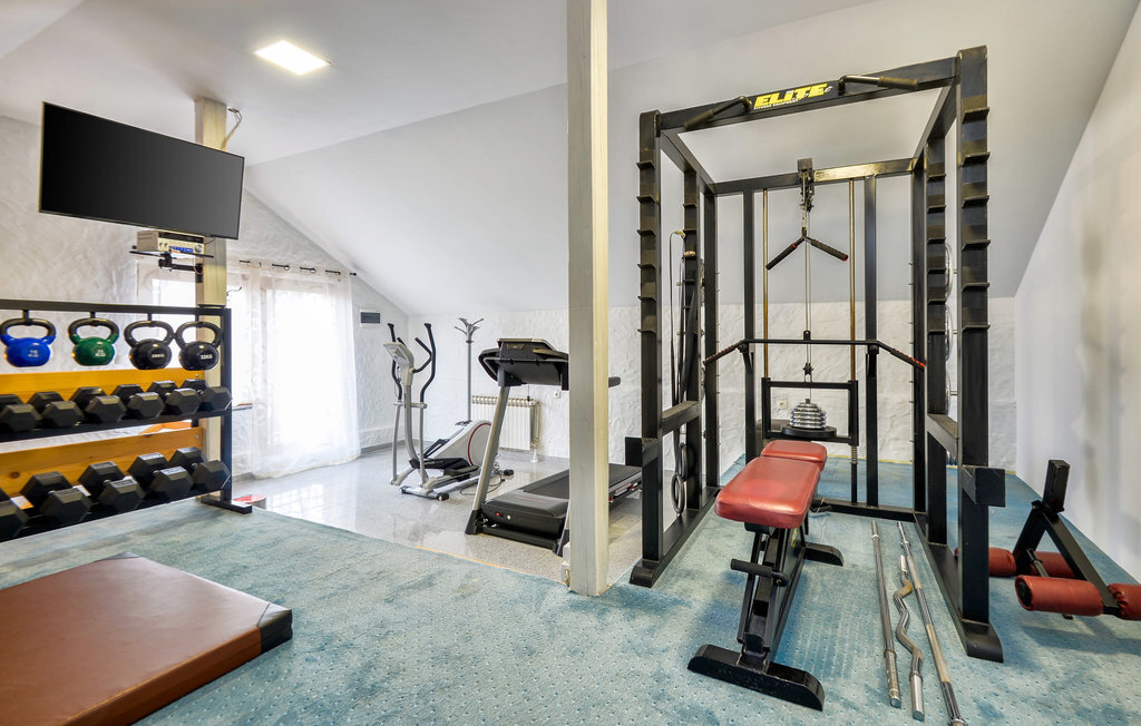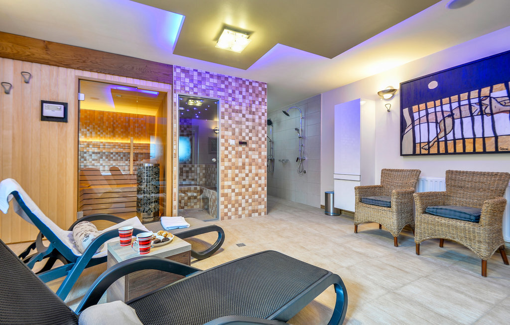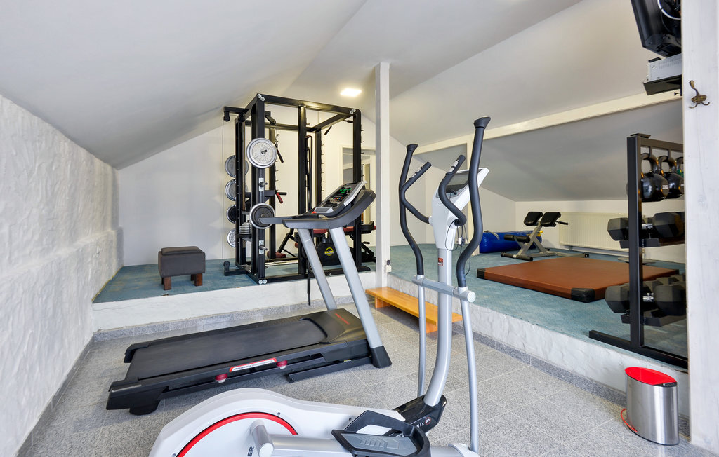L'intérieur de la maison est aménagé de façon moderne et équipé de tout ce dont vous avez besoin pour des vacances insouciantes et reposantes. Pour les amateurs de bien-être, il y a deux saunas, un finlandais et un turc, ainsi qu'un jacuzzi. Une salle de massage séparée est même à disposition. Pour les amateurs de tourisme actif, une salle de fitness entièrement équipée avec de nombreux appareils attend votre utilisation.