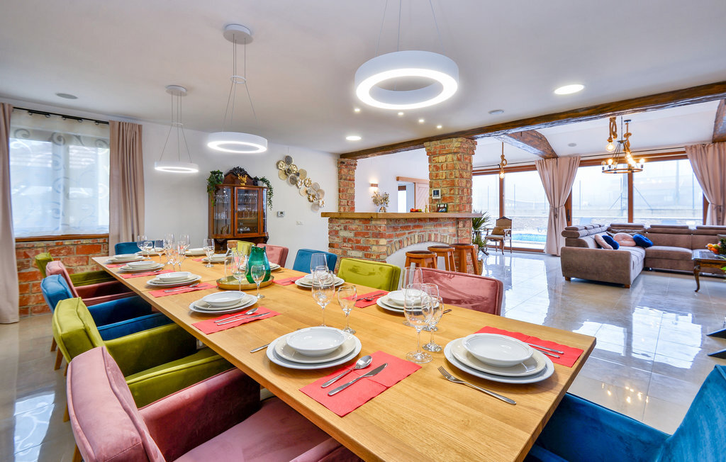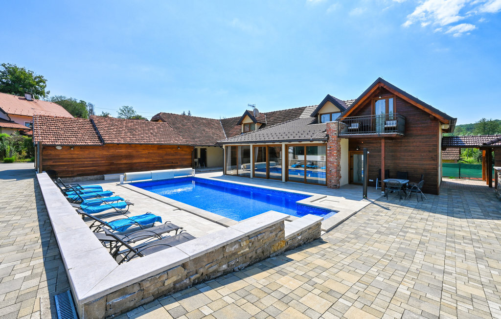 Avec une piscine extérieure et un espace bien-être dans la maison, vous trouverez un véritable havre de détente à proximité de Zagreb. Sur la grande terrasse avec cuisine d'été, vous pourrez faire des barbecues et profiter de vos repas et de la convivialité en plein air.