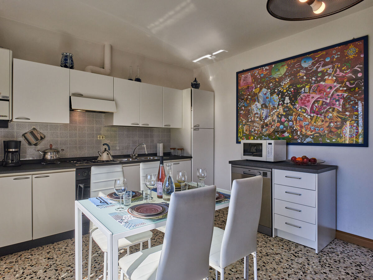 Cuisine ouverte (four, lave-vaisselle, Poêle à gaz, 4 feux, grille-pain, micro-ondes, cafetière électrique).
